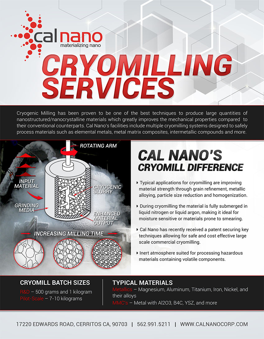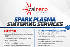 Cal Nano offers an enhanced menu of services to exceed our clients expectations, in R&D to High-Volume Commercial Production Scenarios, including Spark Plasma Sintering, Cryomilling, Mechanical and Wear Testing.